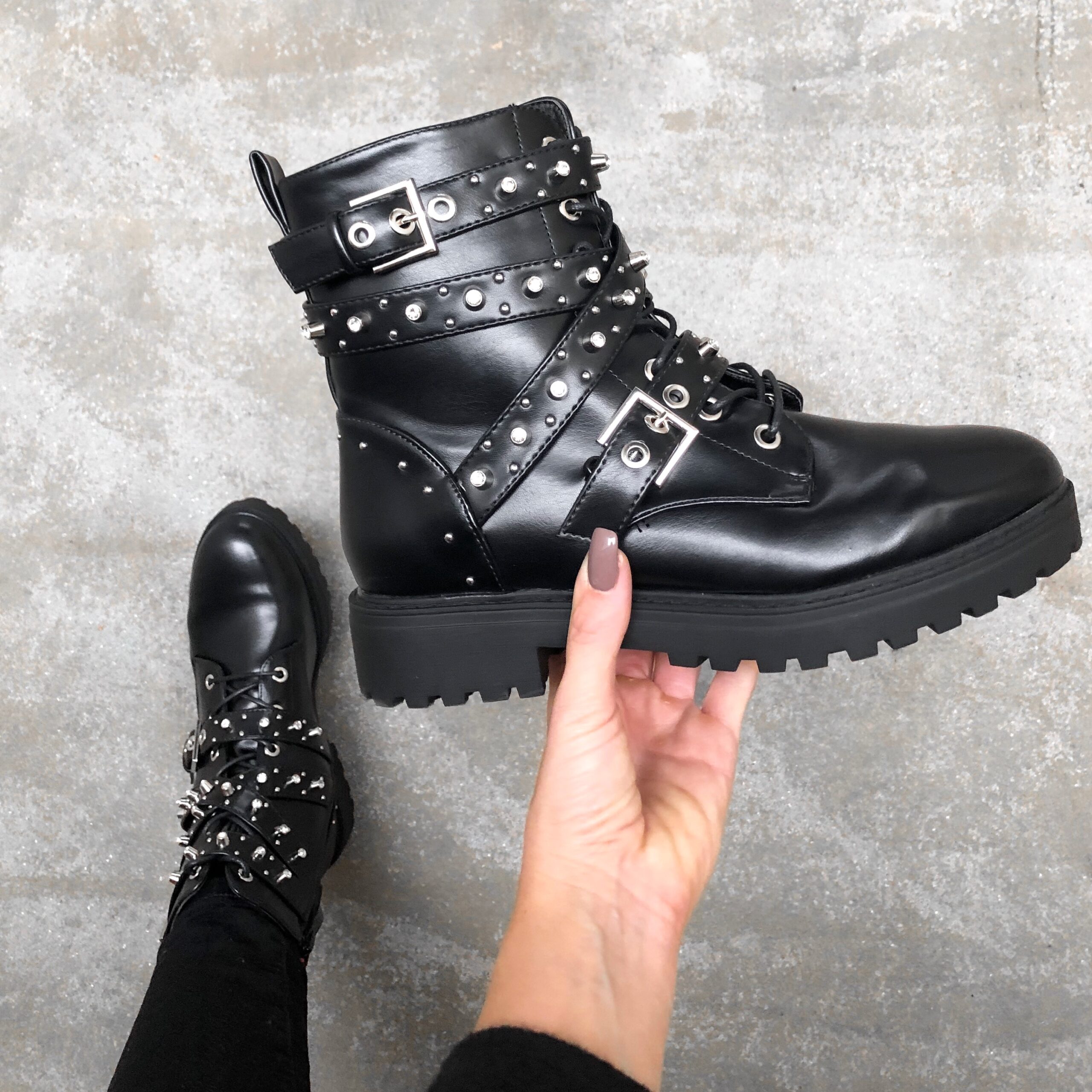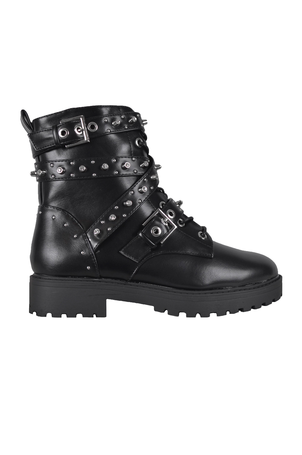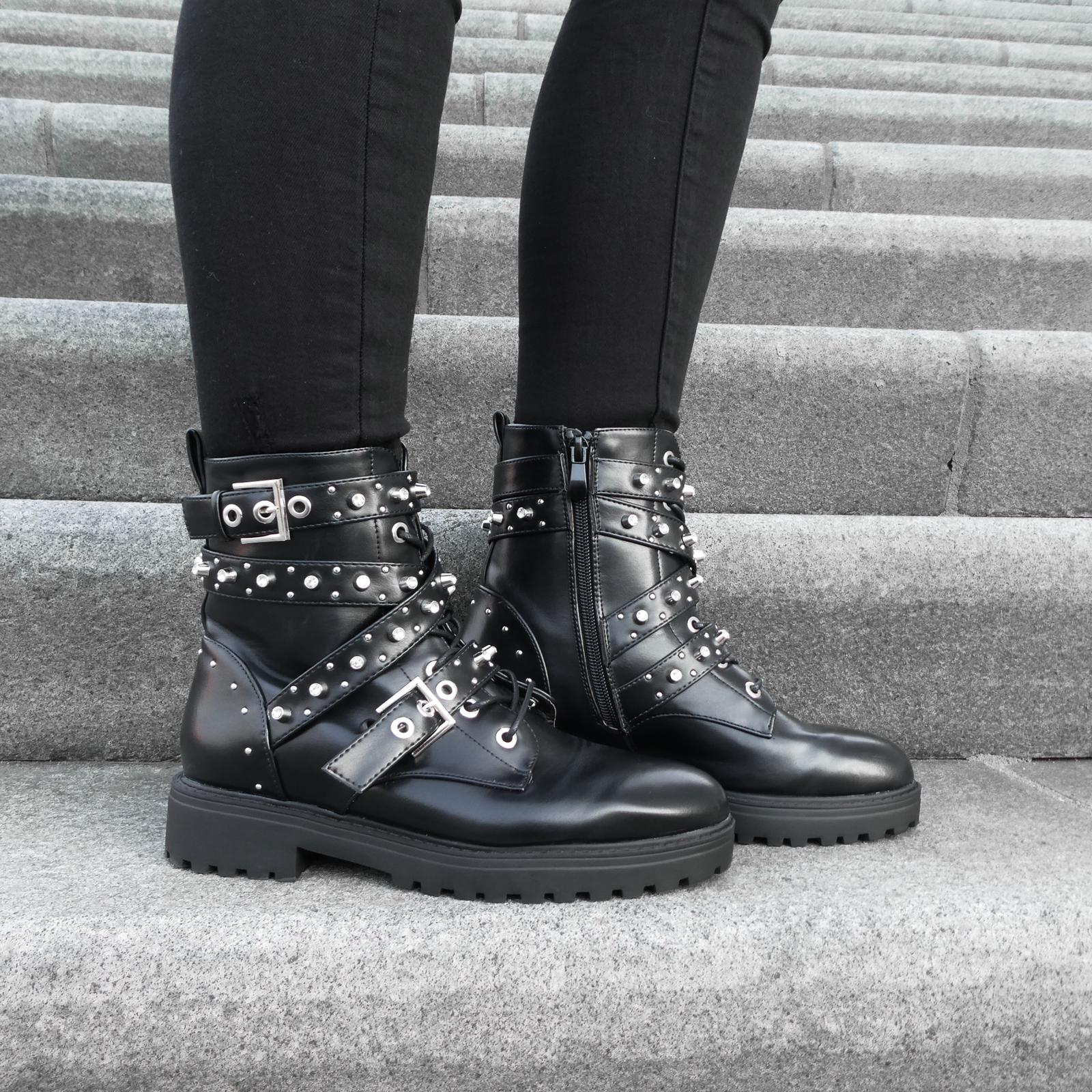 De Chloe detail boots zijn stoer, comfortabel en eindeloos te combineren. De biker boot is afgewerkt met zilveren stenen en studs. Daarnaast is hij voorzien van twee gespen en banden om de schacht. De ritssluiting aan de binnenkant biedt gemak bij het aan- en uittrekken van de enkellaars. Draag de boots onder een jeans of onder een rokje voor een stylish look of the day.
