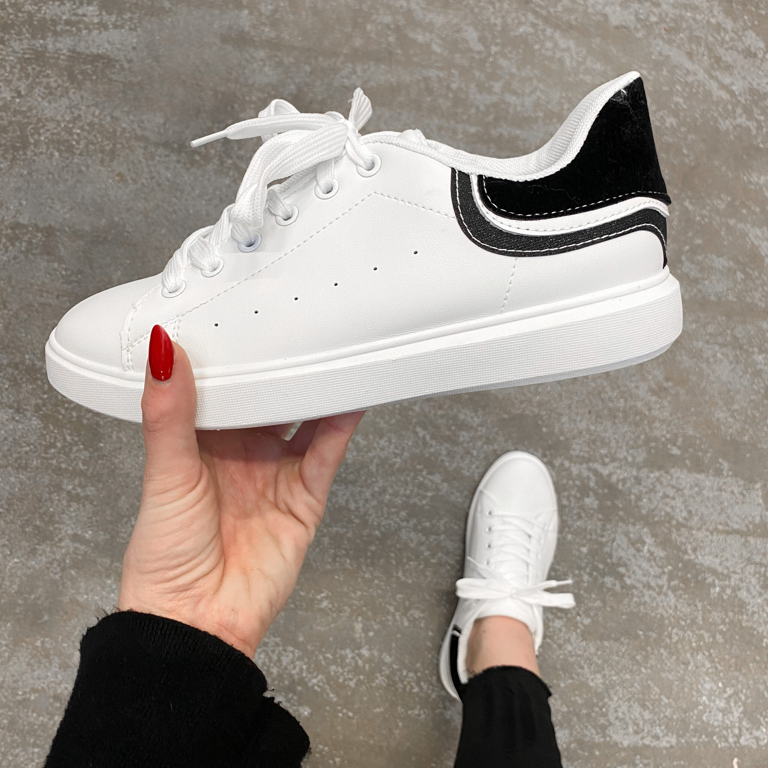 PASVORM: De pasvorm is normaal. Deze witte sneaker met zwart en glitter detail is toch perfect voor bij elke outfit!