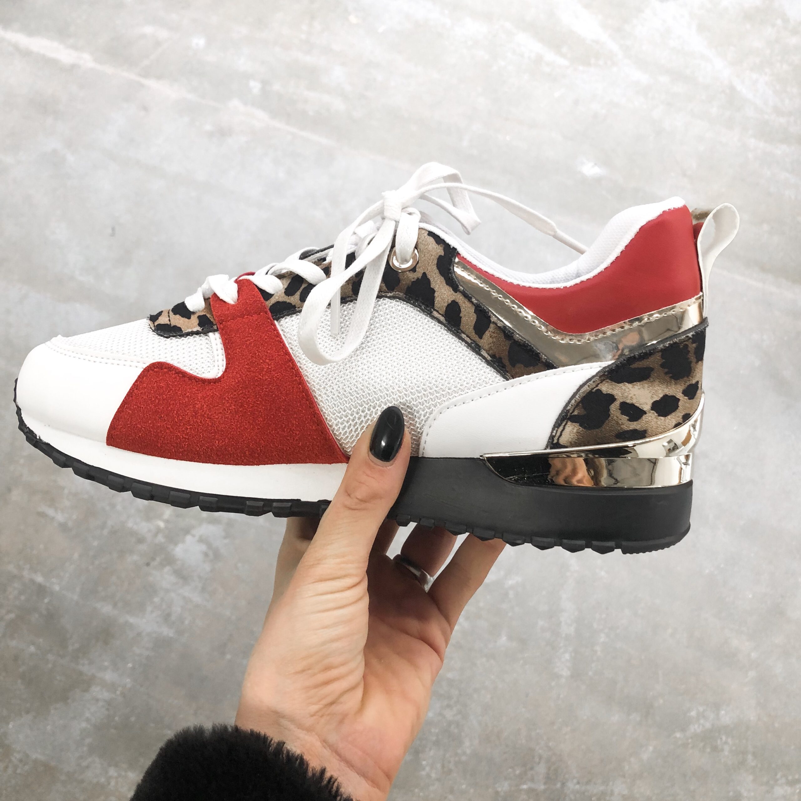 Metallic red leopard sneaker